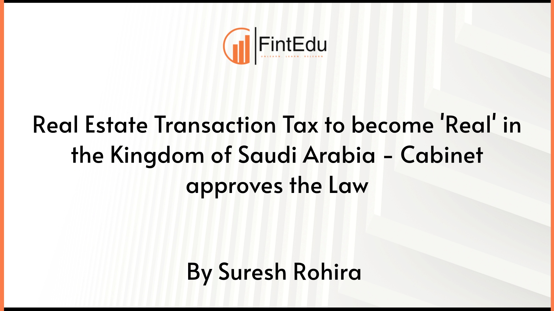 Real Estate Transaction Tax to become 'Real' in the Kingdom of Saudi Arabia - Cabinet approves the Law